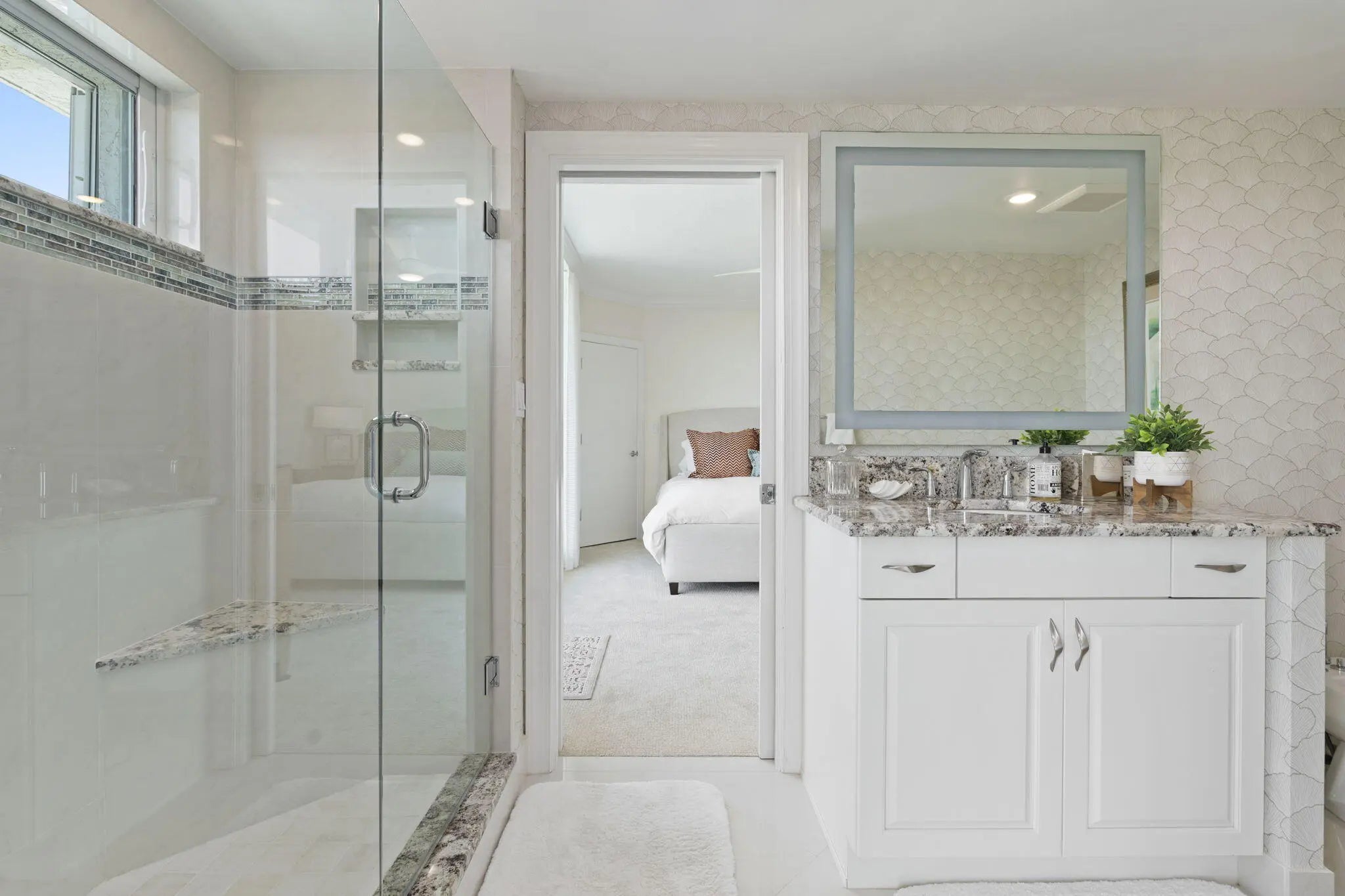 Bar, Closet Cabinets, Custom Mirror, French Door, Laundry Tub, Roman Tub, Split Bedroom, Walk-in Closet