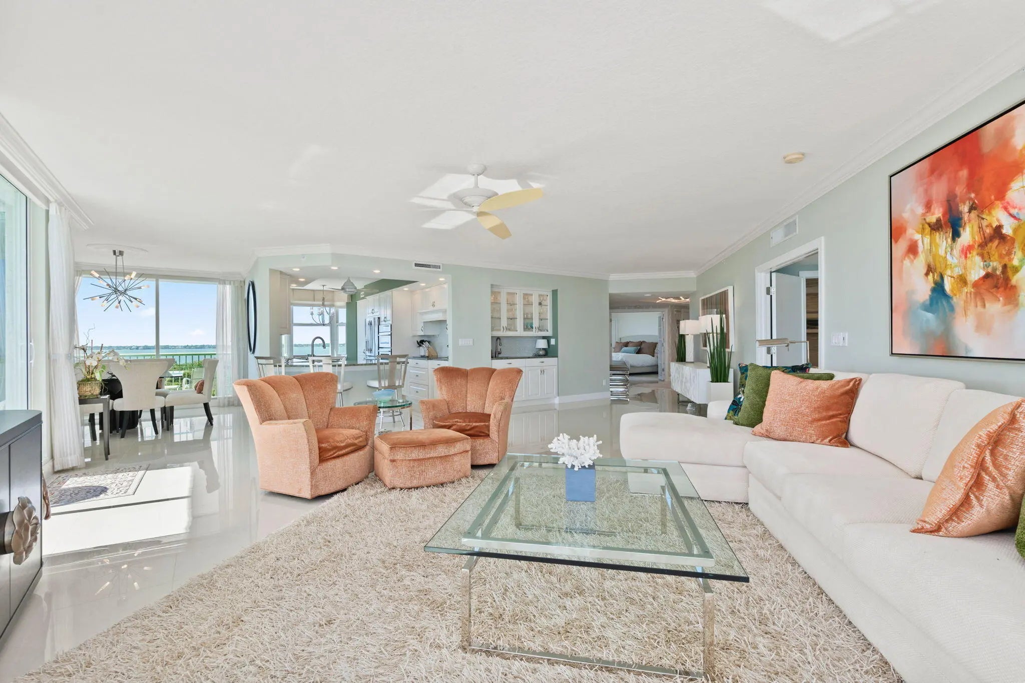 Positioned on the coveted southeast corner within Regency Island Dunes, Residence 606 at 8600 S Ocean Drive Jensen Beach FL 34957 offers sweeping panoramic views of the Atlantic Ocean, and the Intracoastal Waterway. This Double-exposure vantage point captures both sunrise over the Atlantic and sunset across the Indian River Lagoon, creating a daily coastal experience defined by light, movement, and uninterrupted horizon lines.Spanning over 2,800 total square feet, the rarely available ''Ascot'' model delivers the scale and privacy of a true oceanfront residence. Three expansive private balconies extend the living space outdoors, allowing seamless transitions between interior comfort and open-air coastal views. The southeast orientation provides abundant natural light throughout the day