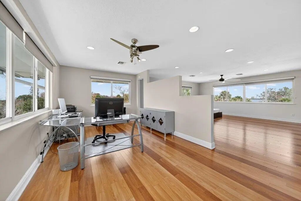 Perched high on peaceful Mockingbird Hill, this exceptional 5-bedroom, 5 full bath estate sits on 1 acre with sweeping Intracoastal water views and a versatile floor plan designed for both comfort and entertaining. The entire top floor is dedicated to a private primary suite retreat. Enjoy a modern kitchen and beautifully updated bathrooms, a cozy fireplace, a 40-foot pool with spa, and a spacious pool house featuring an entertainment room with bar that can also serve as a guest retreat or separate mother-in-law suite. The gorgeous lawn, adjacent to the preserve, creates a peaceful park-like setting with added privacy. An oversized garage, with workshop inside and boat and RV parking outside, adds rare functionality. A true Jensen Beach gem that has it all.