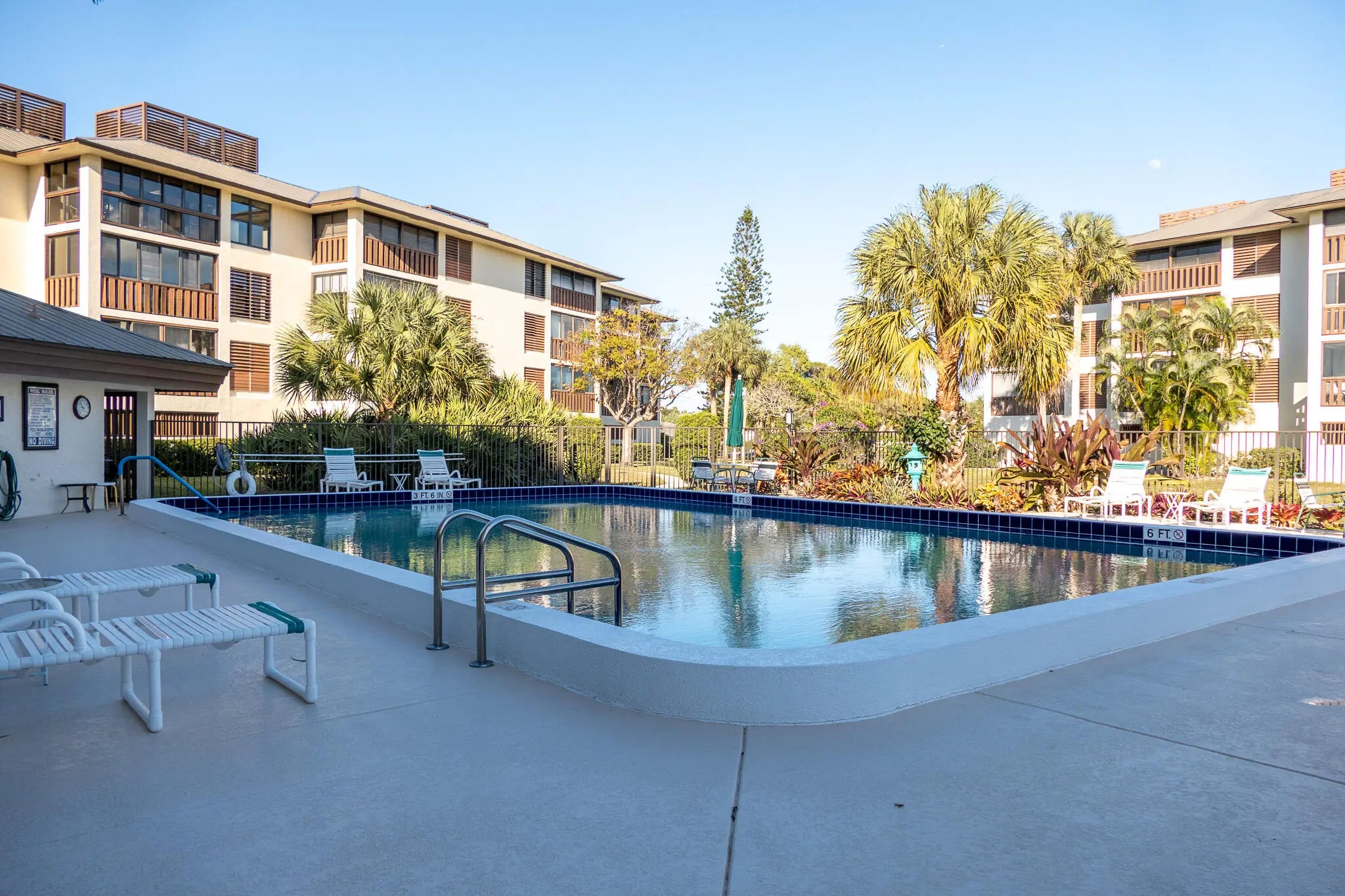 Experience the ease of a lock-and-leave lifestyle in this fully renovated 2BD/2BA top-floor condo with elevator access at St. Lucie Club, a 55+ community nestled among Stuart's most beautiful neighborhoods. Seller is offering one year of condo dues ($1,184/mo; max $14,208 credit), adding exceptional value. Beautifully curated with a thoughtfully renovated kitchen featuring butcher block countertops, grass-cloth accents & chic feature wall. 2025/26 upgrades: impact windows & sliders, updated plumbing & electric, new HWH, all appliances (incl. washer/dryer), lighting, fixtures & flooring. 2023 AC. Enjoy pool & garden views from your balcony. Indoor garage parking, climate-controlled storage, heated pool, tennis & pickleball. Walk/bike to beaches & experience the charm of historic downtown St