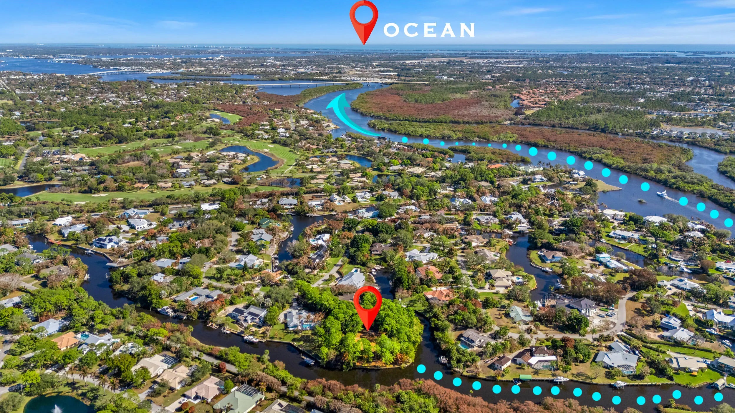 Welcome to Oasis Point--a remarkable point lot in the serene boating community of Four Rivers in Palm City. This exceptional property offers just over an acre with more than 350 feet of deep-water frontage and direct ocean access with no fixed bridges. The center of the lot has been cleared and is ready for your dream home, while the perimeter is lined with mature trees, creating a private and secluded estate setting. Enjoy highly desirable southern exposure in the backyard, along with beautiful surrounding water views and a peaceful preserve backdrop to the west. A rare opportunity to build a custom waterfront estate in one of Palm City's most sought-after boating communities.