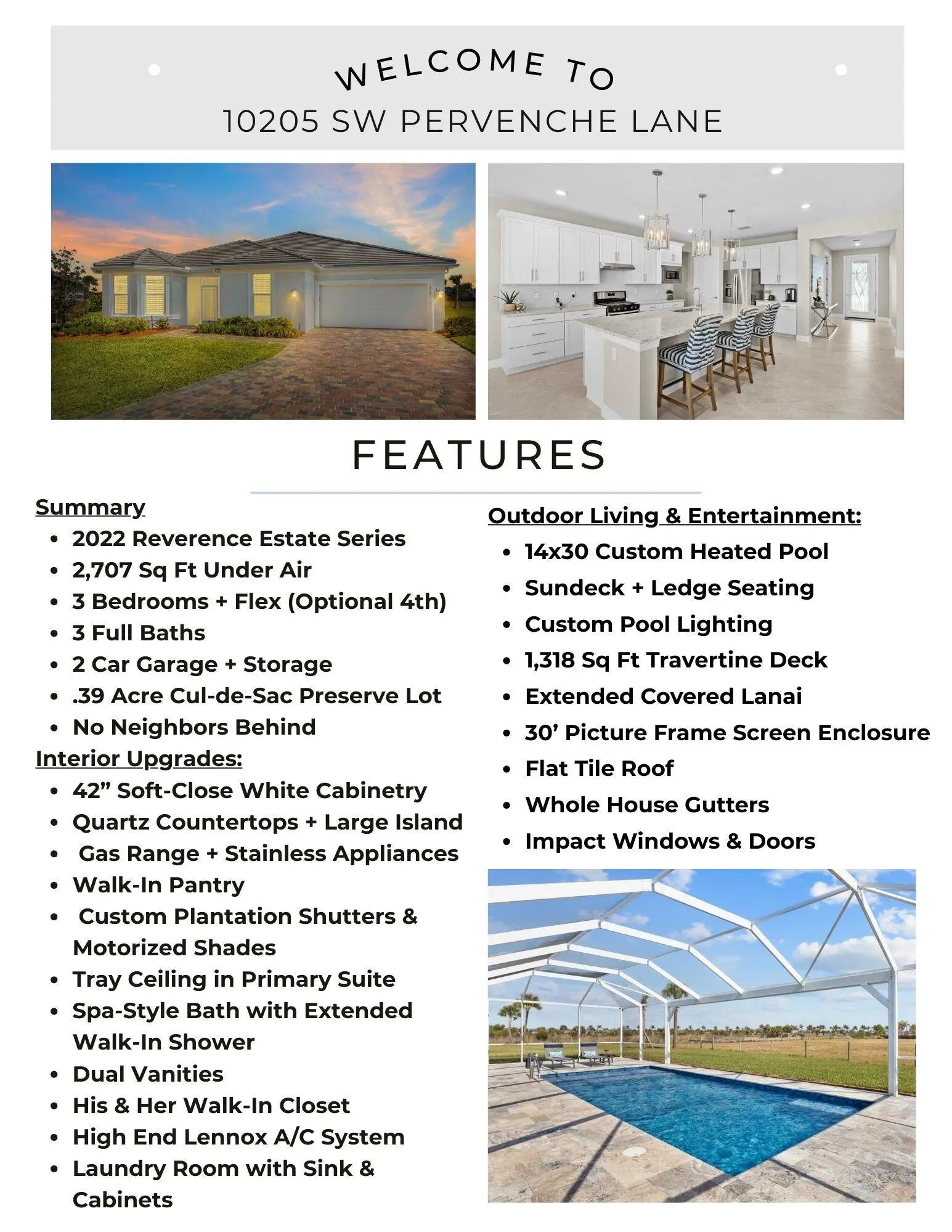 This gem is located on an oversized .39-acre premium lot with no rear neighbors and sweeping preserve views in the sought-after community of Del Webb at Tradition. Tucked at the end of a quiet cul-de-sac, this stunning pool home provides rare space and serenity and delivers the ultimate Florida lifestyle. This move-in ready 3 bed, 3 bath + flex room property offers high ceilings, open layout, impact windows + doors, natural light and many upgrades. The expansive backyard with extended lanai, picture-frame screen enclosure, 14x30 custom pool and huge travertine deck, is a true outdoor oasis. Whether entertaining, relaxing or enjoying the resort-style amenities, this home has it all. Shopping, dining and Tradition Square are just minutes away.