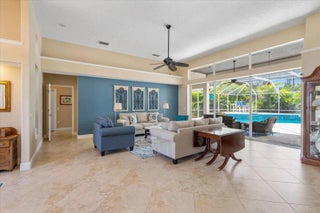 Nestled on 2.84 acres, this spacious 6 bed + office, 4 bath, POOL home offers the perfect blend of comfort & indoor-outdoor living. The open floor plan showcases spacious, light-filled living areas with soaring ceilings, oversized transom windows & a seamless connection between indoor & outdoor living. Offering a spacious & well-thought-out floor plan, the first floor features an expansive primary suite with double walk in closets and access to the lanai, 2nd ensuite, 3rd bedroom, cabana bath & office/game room -with enough space for a pool table, cozy family room with fireplace, formal dining room & an impressive formal living room with a wall of windows that seamlessly opens onto the lanai. Upstairs are the additional 3 bedrooms and bathroom. The gourmet kitchen features a gas double..