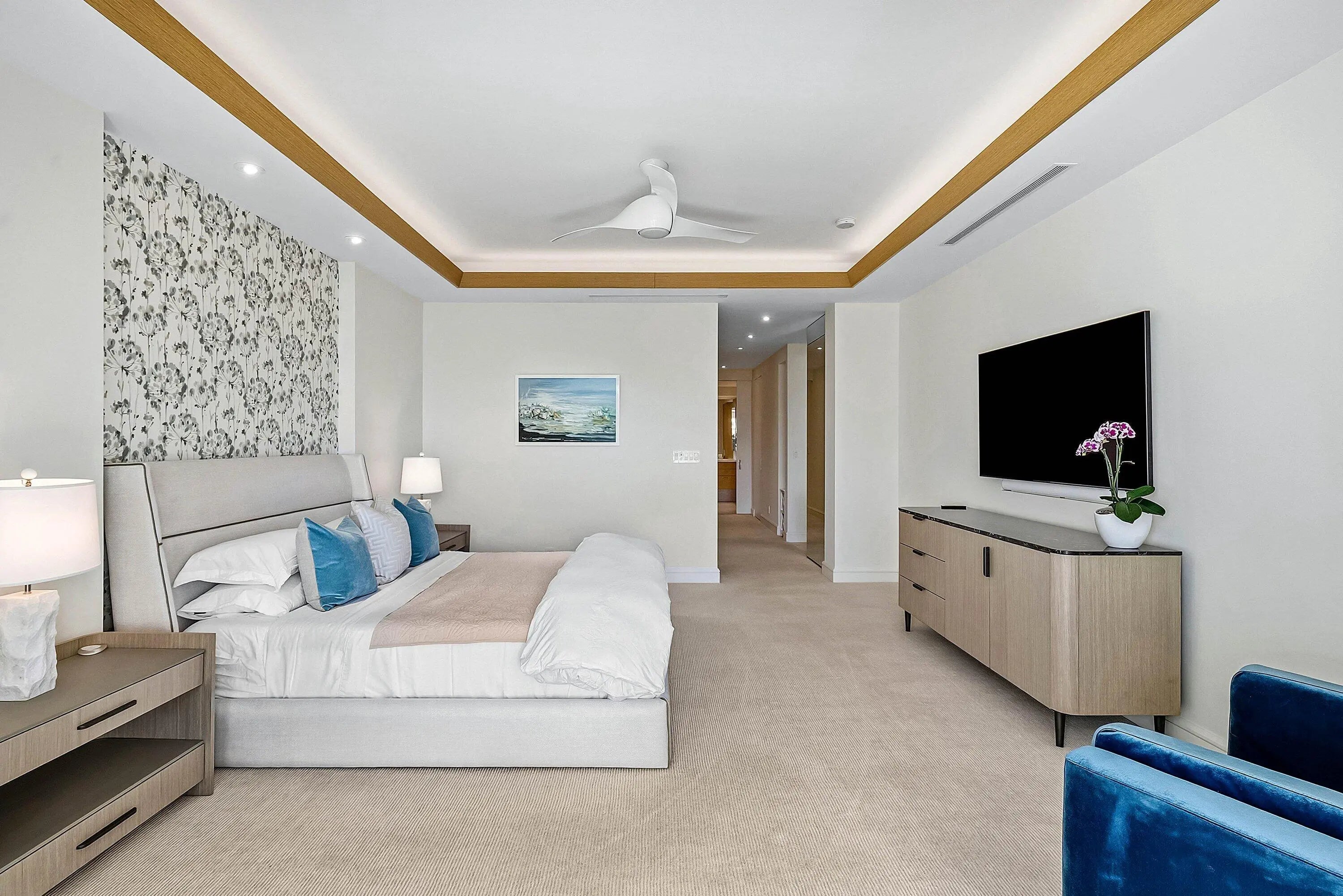 This chic third-floor condominium in Sailfish Point offers an exceptional luxury coastal lifestyle. Panoramic views of the St. Lucie Inlet, Atlantic Ocean, and Jupiter Island shoreline create a dramatic backdrop, complemented by vibrant sunsets and refreshing trade winds that enhance the home's sense of privacy and serenity.Fully gut-renovated in 2017, the residence was rebuilt to the highest standards with all new drywall, electrical, and plumbing systems; book-matched custom cabinetry and millwork; solid 8-foot custom doors; raised 10-foot ceilings; and a Level 5 smooth finish throughout.The sleek DKI kitchen, equipped with premium Thermador appliances, flows seamlessly into open living spaces ideal for entertaining. Additional highlights include 24'' x 24'' travertine flooring,